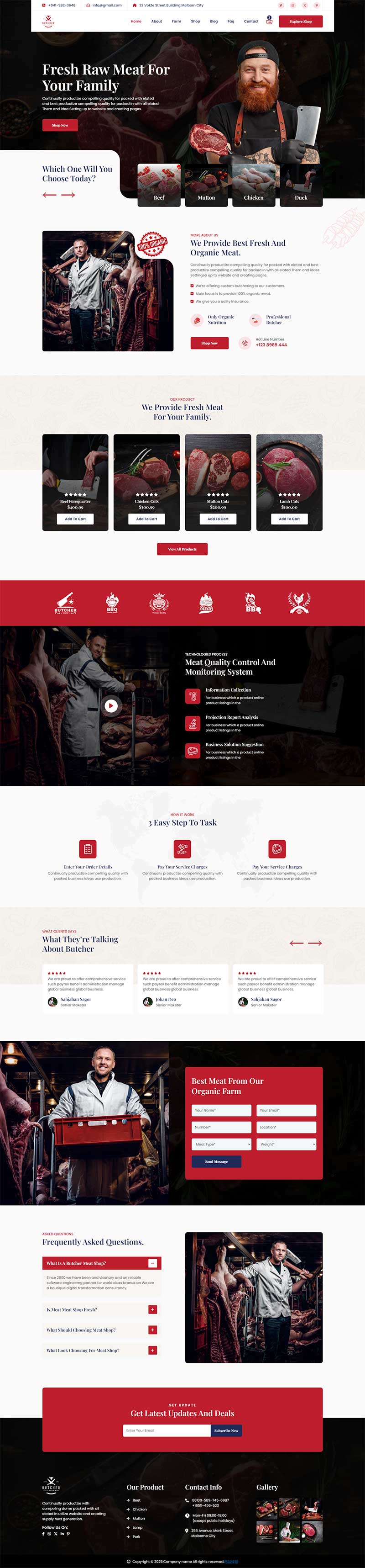 响应式有机肉食品类网页模板,适配多终端,页面布局简洁美观,清晰呈现有机肉类产品信息,助商家搭建优质销售平台 。