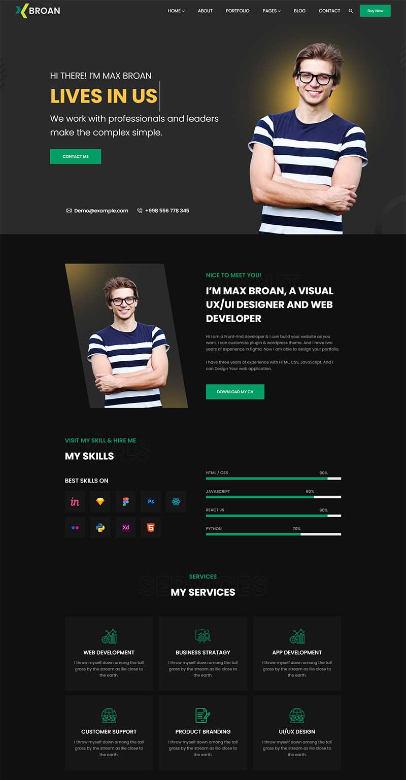 酷黑色调的响应式程序员个人介绍网页模板,彰显沉稳专业,适配各类屏幕,帮程序员用个性风格展示技能与经历。