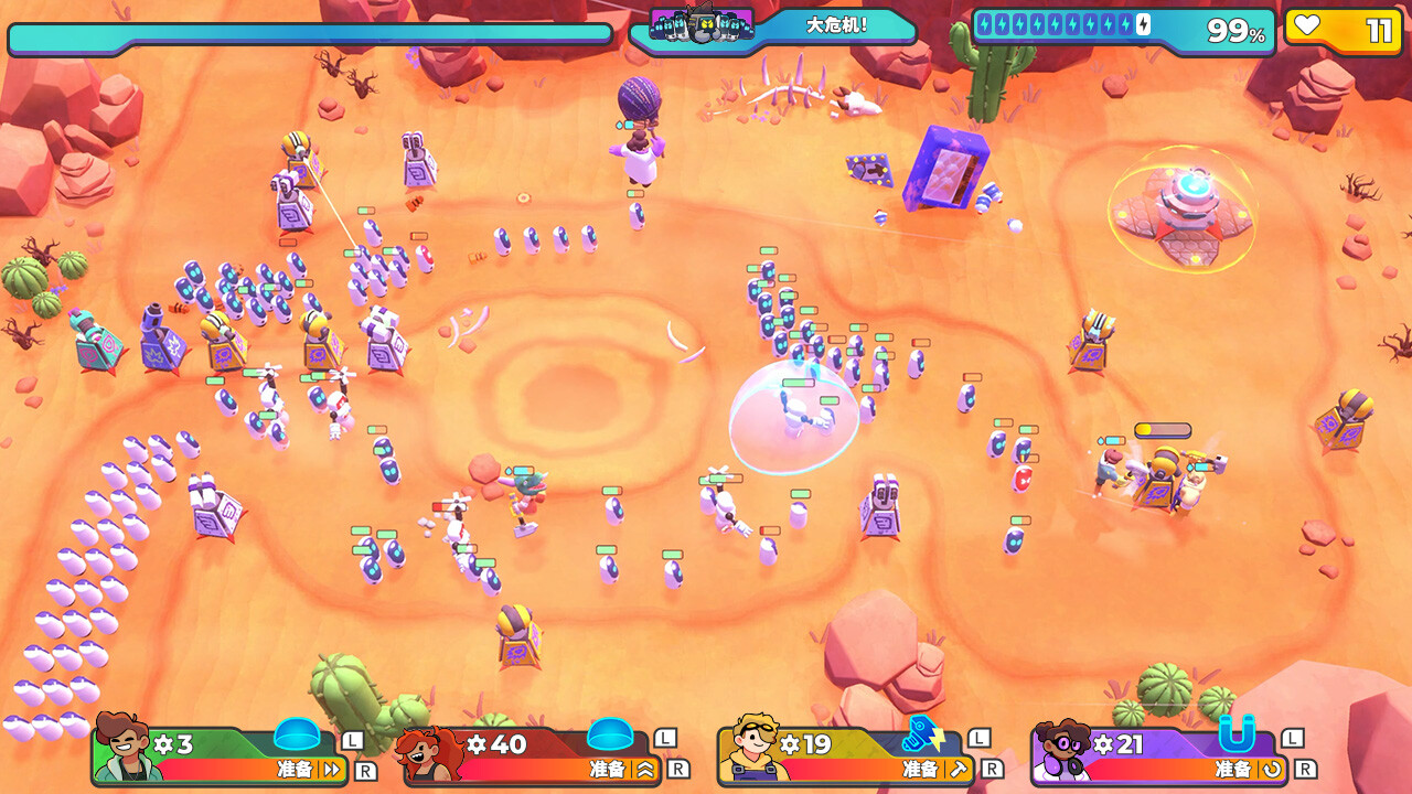 《哔哔砰砰大作战》是休闲策略塔防和热血格斗动作的独特结合。在沙发合作或在线游戏中组建队伍,或者单枪匹马拯救世界。建造可升级的炮塔,解锁新的装置,挥舞手中的大锤,把机器人打个落花流水吧。